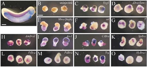 PdBra mRNA; (N) 0.3 ng of Trg mRNA; (O) 6 ng of HyBra1 mRNA. Scale bars represent 400 m in (A), and 200 m in (BâO).