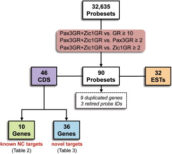 Fig. 2. Flow chart and criteria for the selection of Pax3-Zic1 targets.