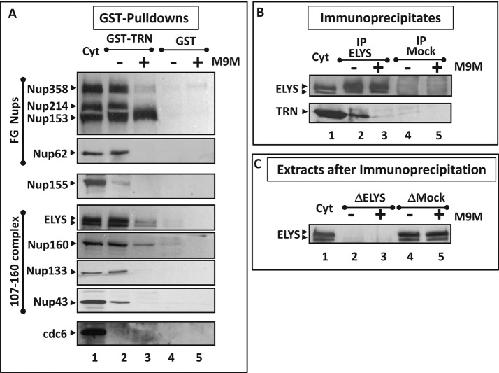 Genes referenced: ahctf1 cdc6 hnrnpa1 hnrnpc mbp myc numa1 nup133 nup153 nup155 nup160 nup214 nup43 nup62 ran ranbp2 rcc1 tnpo1 tpx2