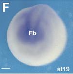 lpar6 (lysophosphatidic acid receptor 6) gene expression in Xenopus laevis embryo, assayed via in situ hybridization, NF stage 19, anterior view, dorsal up.