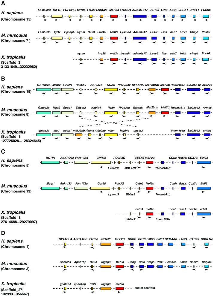 Figure 1. Synteny analyses of Mef2a, b, c, and d.