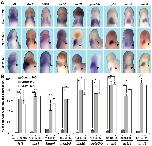 Figure 4. Cardiac differentiation is affected upon loss of Mef2c or Mef2d.A. At stage 28, depletion of Mef2c or Mef2d led to a reduced expression of cardiac markers including isl1, bmp4, nkx2.5, tbx1, tbx20, gata6b, myh6, actc1, and tnni3 (arrowheads). Ventral views of embryos are shown. B. Quantitative presentation of the observed phenotype in A is given. N = number of examined embryos; n = number of independent experiments; *, p≤0.05; **, p≤0.01.
