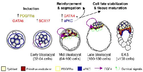 FGF signal-dependent segregation of primitive endoderm and epiblast in the mouse blastocyst.