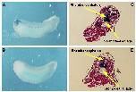analyses of the control and defected embryos stained with H and E. (D) At stage 11, sagittal sections showed defects in the movement of cells. (E) At stage