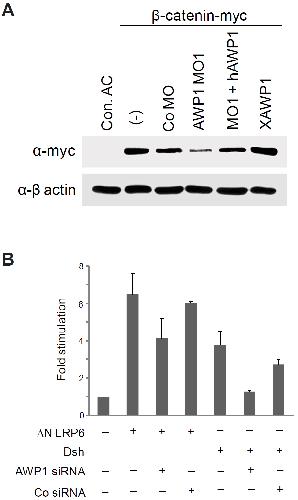 Fig. 6. AWP1 is involved in Wnt/-catenin signaling. (A) Four-cell stage