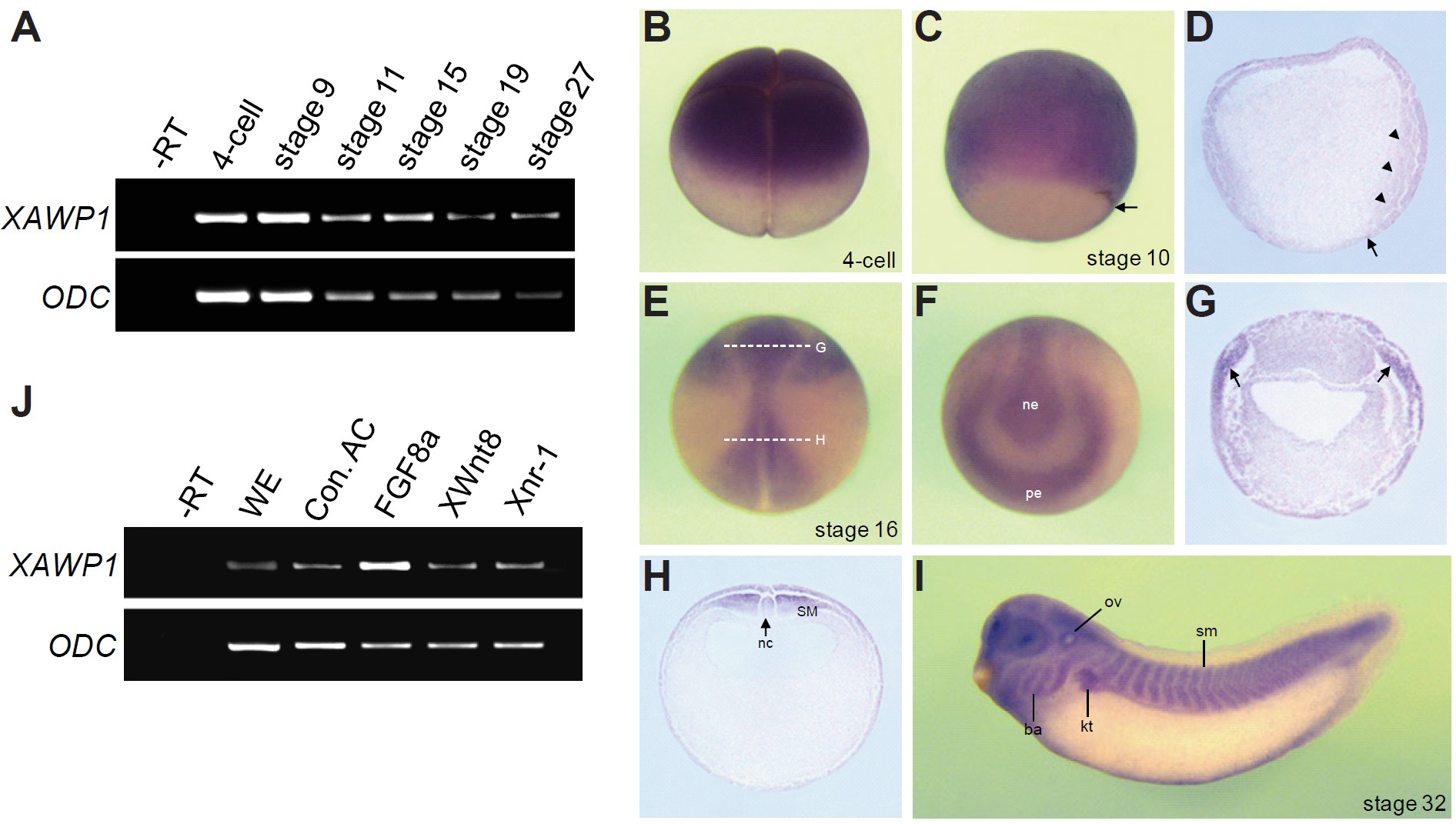 hAWP1 (400 pg) and XAWP1 (400 pg), and the animal caps were excised