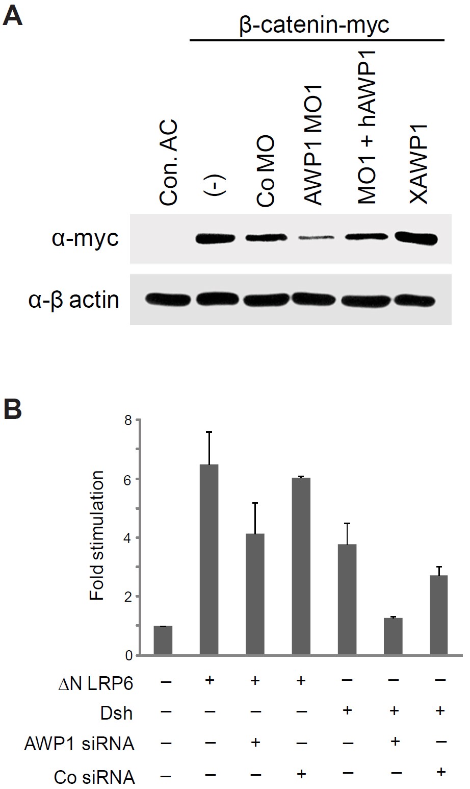 of -catenin-myc (100 pg), Co MO (40 ng), AWP1 MO1 (40 ng),