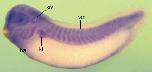 zfand6 (zinc finger, AN1-type domain 6) gene expression in Xenopus laevis embryo, assayed via in situ hybridization, NF stage 32, lateral view, dorsal up, anteriorleft.