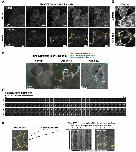 Figure S3. Anillin regulates the distribution of Rho-GTP, F-actin, and P-MLC, Related to Figure 4. A. Frames from live confocal imaging of Rho-GTP dynamics in dividing control and Anillin KD embryos. Embryos were injected with GFP-rGBD (Rho binding domain of Rhotekin) as a probe for active Rho. In control embryos, Rho-GTP is present around cell-cell junctions and remains focused at the equatorial cortex (red arrow) throughout cytokinesis. When Anillin is knocked down, active Rho is not restricted to the equatorial cortex (red arrow). Flares of Rho-GTP appear at cell-cell junctions around the perimeter of the cell (yellow arrows). B. F-actin (mChe-UtrCH) images corresponding to late cytokinesis in the control and Anillin KD cells in Figure S3A showing that the dividing Anillin KD cell is separating from its neighboring cells (yellow arrows), whereas the control cell maintains adhesion with its neighbors. C. Brightest point projections of Rho-GTP flares over three time intervals in dividing control and Anillin KD cells (division site marked by red arrow). Red = flare during minutes 0-2.5, green = flare during minutes 2.5-5, blue = flare during minutes 5-7.5, white = overlap of Rho-GTP flares through the time intervals. Boxed regions are enlarged in Figure S3C’. C’. Montage of frames from time lapse movies corresponding to the dashed boxes marked in the Anillin KD images in Figure S3C highlighting the lifetime of the Rho-GTP flares. D. Scheme showing how kymographs were generated for analysis of junctional RhoGTP over time (see Experimental Procedures). Tricellular junctions where three cells come together are numbered above the resulting kymographs and are marked by vertical lines in the kymographs. |