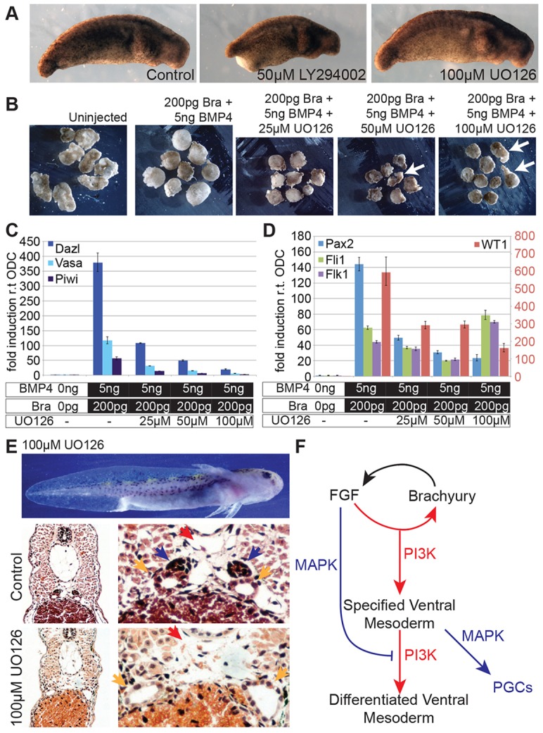 Carballada, Phosphatidylinositol-3 kinase acts in parallel to the ERK MAP kinase in the FGF pathway during Xenopus mesoderm induction. 2001, Pubmed , Xenbase