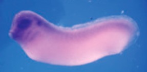 c1h12orf43 (chromosome 1 C12orf43 homolog) gene expression in Xenopus laevis embryo, assayed via in situ hybridization, NF stage 30, lateral view, anterior left, dorsal up.