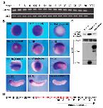 dorsal cell of four-cell embryos. At stage 26, in situ hybridization was performed with the indicated probes. Red staining shows expression of LacZ as tracer for