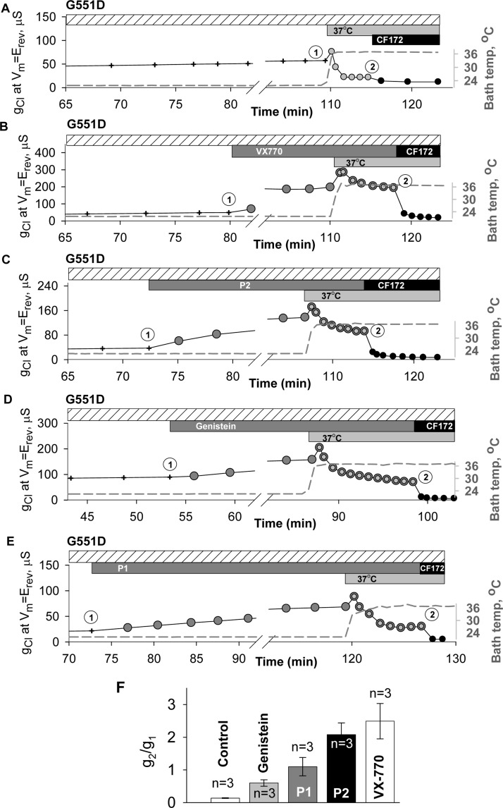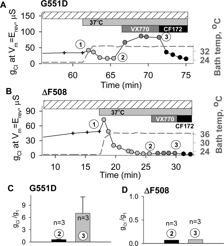 10 μM VX-770 and then warmed to 37 °C (gray bar and circles)