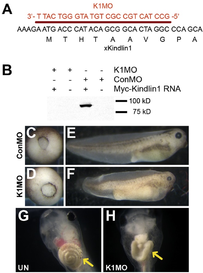 caused by loss of xkindlin1. (A) Sequence of K1MO used to