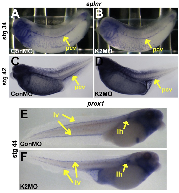 appeared to regress in K2MO morphants. (EâF) RNA in situ