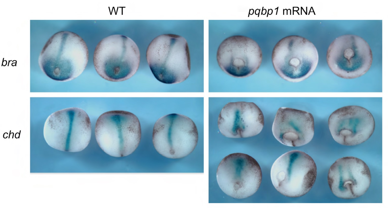 stage with 1 ng pqbp1 mRNA, were analyzed by in situ hybridization with brachyury (bra) and chordin