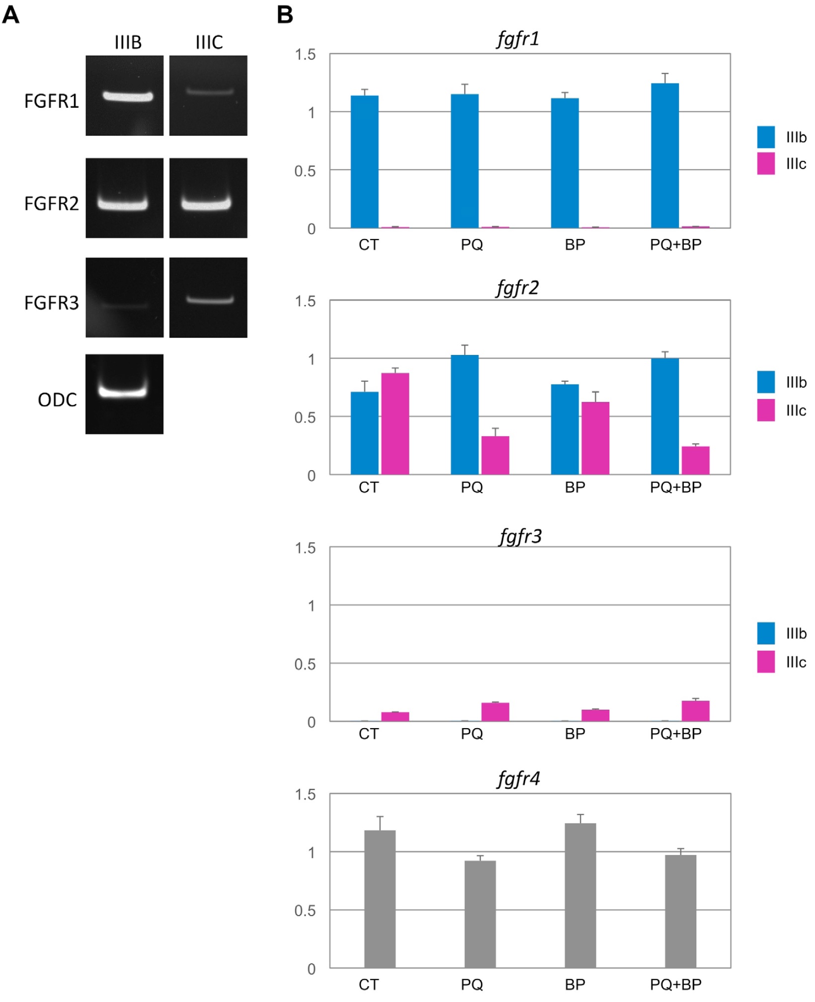 expression levels of fgfr1IIIc and fgfr3IIIb transcripts appear nearly zero, they were detected in gelbased