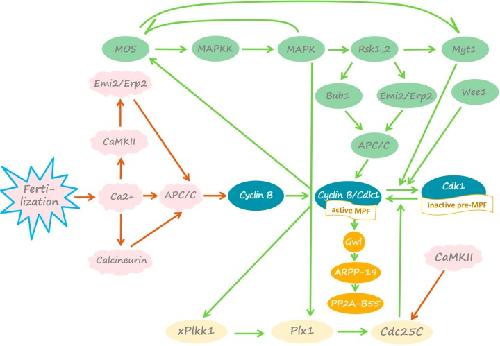Genes referenced: arpp19 bub1 cdc20 cdc25c cdk1 fbxo43 mastl mink1 mos plk1 ptpa stk10 wee1
