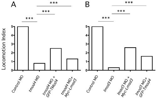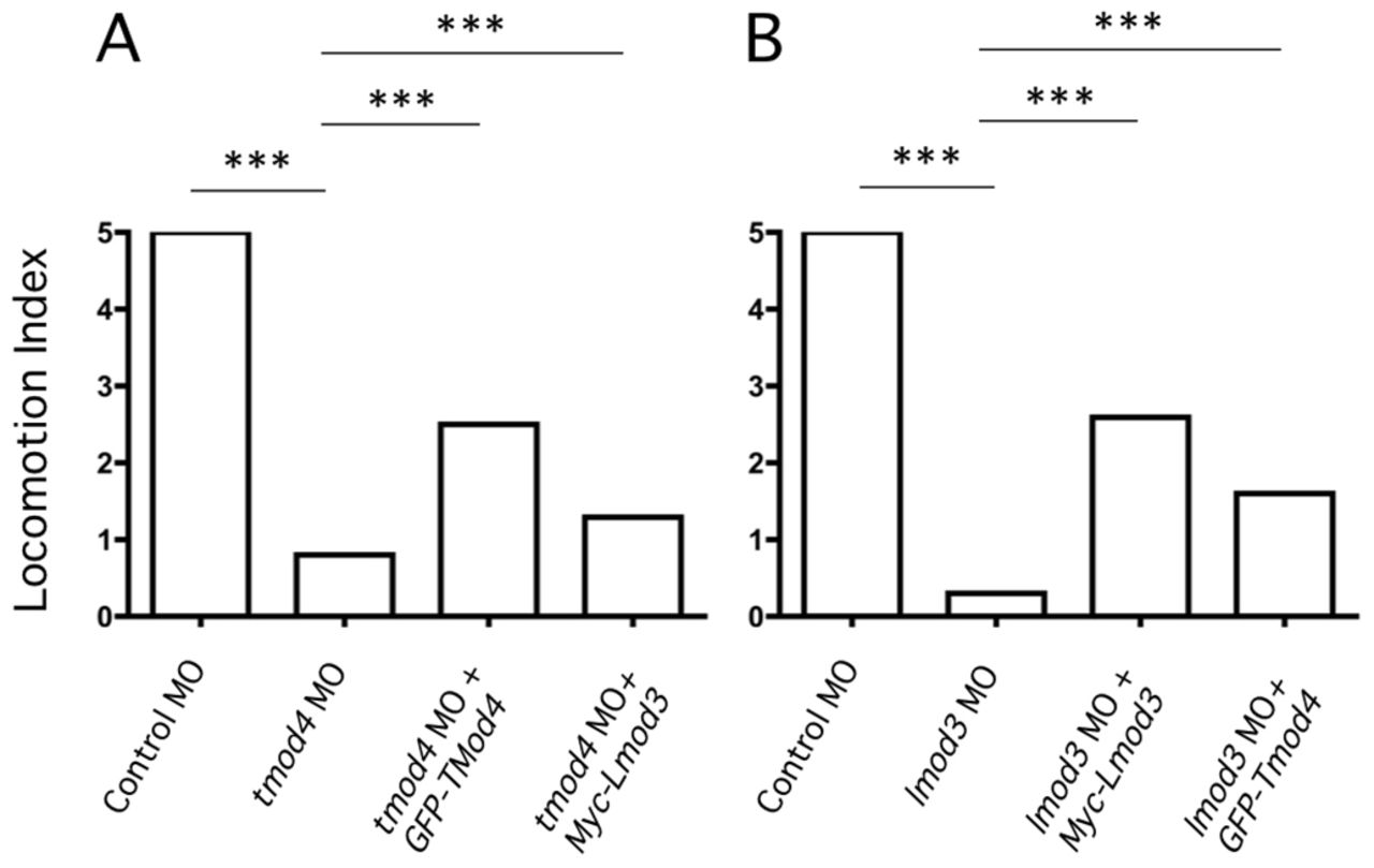 compared with that of embryos depleted of Lmod3 alone (Mâ
