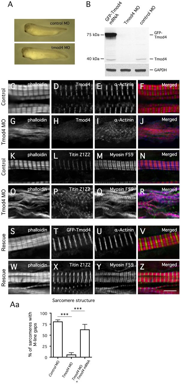 (Aa) showed that depletion of Tmod4 protein in st34 embryos