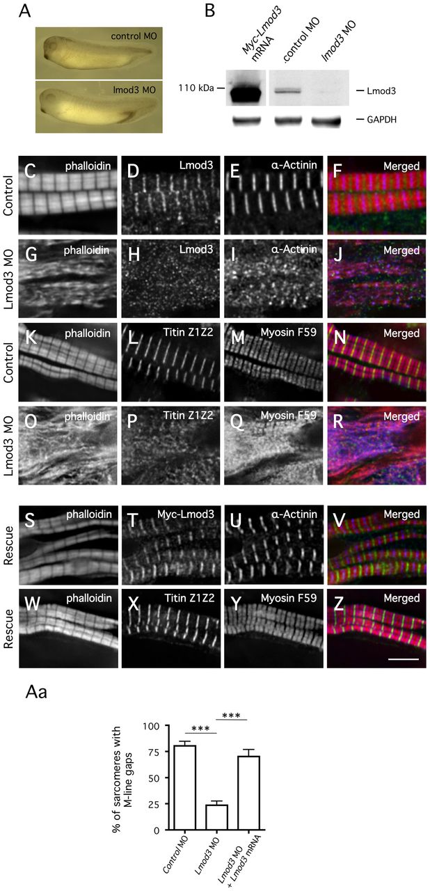 of Lmod3 protein. (CâR) Loss of Lmod3 protein resulted in