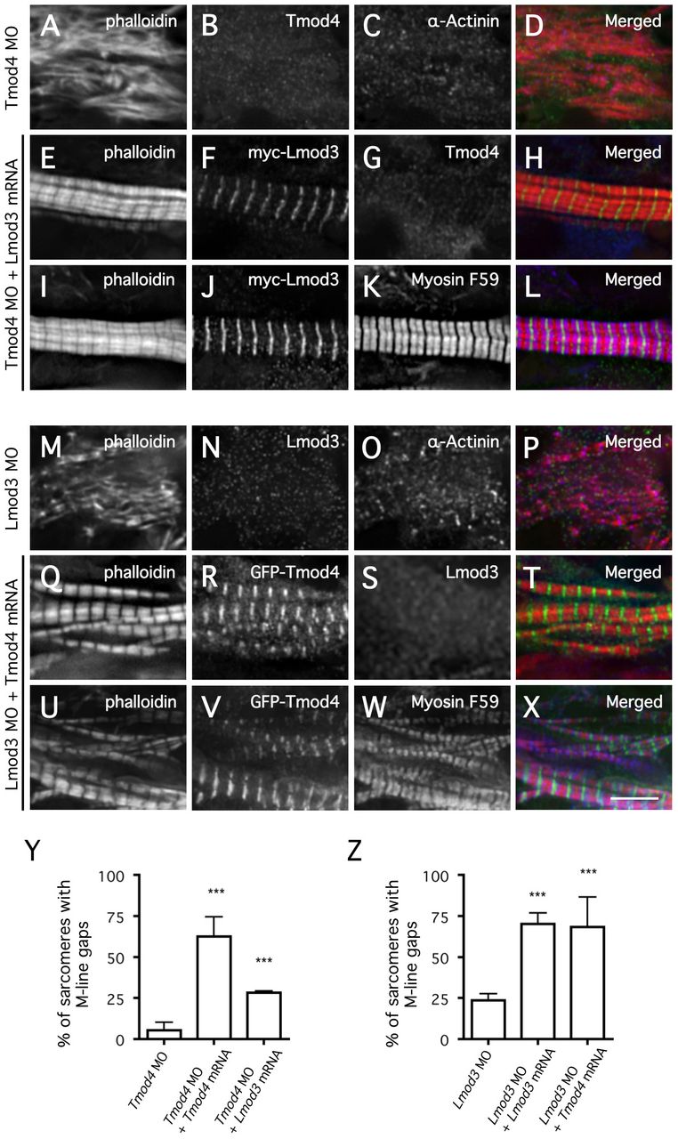 Fig. 2. Tmod4 and Lmod3 localize to the M-line during