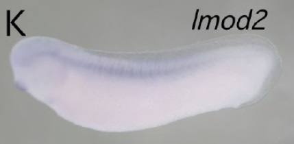 neurula stage prior to skeletal muscle assembly. Tmod (B-D) and Lmod (E-H)