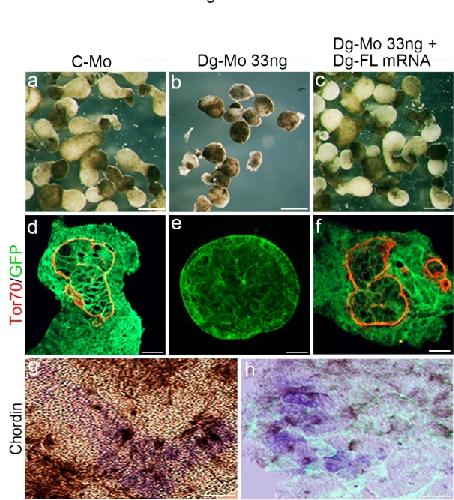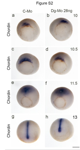 chordin mRNA was similar in controls and Dg-morphants. Scale bars: 500 µm.