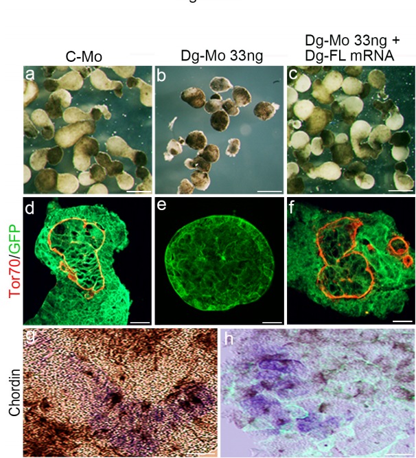 and Dg-Mo is shown in panel h. The expression of chordin is detected in control (g) and