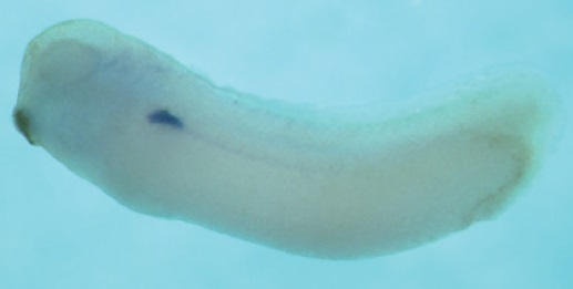 Fig. 4 (Left). Spatial expression of arid5b during Xenopus development. In situ hybridization