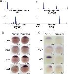 Expression of zebrafish goosecoid and no tail gene products in wild-type and mutant no tail embryos.