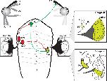 Figure 6 Schematic diagram depicting the hindbrain connectivity of bilateral vestibular endorgans and the SO eyemuscle along with the developmental changes in utricularâposterior semicircular canal contributions to the SO motor response vector. At stage 46, SO motor responses derive from the entire utricle (yellow area), whereas at stage 55, SO motor responses derive from a utricular sector that aligns with the PC on the same side. AC, PC, HC, anterior, posterior vertical, horizontal semicircular canal; ACc, inhibitory commissural AC neuron; ACi, inhibitory AC neuron; IO, inferior oblique; IR, inferior rectus; LR, lateral rectus; MR, medial rectus; PCe, excitatory PC neuron; r1â8, rhombomere 1â8; SR, superior rectus eyemuscle; Tro, trochlear motoneurons.