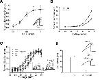 Fig. 2. Effects of gintonin on IKs channel activity. (A) Gintonin concentration-response curves for IKs channels (mean ± S.E.M; n = 7–10 oocytes each). Inset, representative traces of gintonin-mediated IKs (KCNQ1 + KCNE1) channel activation at various gintonin concentrations. The representative peak outward current amplitude at +30 mV from a holding potential of −80 mV was measured in the absence or presence of gintonin. (B) Effects of gintonin (0.1 and 0.3 μg/ml each) on the current–voltage (I–V) relationship of the IKs channels (mean ± S.E.M; n = 10–12 oocytes each). (C) Voltage-dependence activation curves for the IKs channel. Inset, Left and right current traces are before and after application of 0.1 μg/mlgintoninto IKschannels, respectively. Currents recorded during 3 s depolarizing pulses to membrane potentials of −60 to +50 mV, applied from a holding potential of −80 mV. Tail currents were measured at −70 mV. I–V relationships for normalized IKs tail currents. Data were fitted to a Boltzmann function. (D) Attenuation of gintonin-induced IKs channel activity after treatment with Ki16425. The histogram shows blockage of gintonin-mediated IKs channel activation by the LPA1/3 receptor antagonist, Ki16425. Application of 0.1 and 1 μg/ml gintoninto IKs channels, respectively (mean ± S.E.M; n = 10–12 each) (*P < 0.001, compared to gintonin treatment only). Inset, Currents traces recorded in the absence and presence of 1 μM Ki16425 in oocytes expressing IKs channels; currents were recorded with a 3-s voltage step to +30 mV from a holding potential of −80 mV.