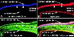 Confocal image of the differential distribution and co- localization of Mel1a and Mel1c receptor immunoreactivity in the Xenopus laevis cornea and sclera. Sections of Xenopus eyes were incubated first with the Mel1c receptor antibody and labelled with a green fluorescent dye-antibody conjugate then incubated with the Mel1a antibody labelled with a red fluorescent dye-antibody conjugate and analyzed by confocal microscopy. The merged image of Mel1c and Mel1a immunolabeling demonstrates the differential expression and co-localization of the two receptor types. (A) The two receptors appear to have some co- localization in the superficial layers of the corneal epithelium (small arrowheads), as indicated by the yellow fluorescence. Only the Mel1a red immunolabeling appears in the deeper layers of the corneal epithelium (large arrowheads). Some specific Mel1c green immunolabeling appears in corneal fibroblasts (small arrows) and in the corneal endothelium (large arrowheads), but the labelling that occurs in the non-cellular corneal stroma was determined to be artifact. In additional its expression in the corneal epithelium, Mel1a is present in the corneal stroma fibroblasts (small arrows) and the corneal endothelium (large arrowheads). (B) The two receptors are co- localized in the deep layers of the outer fibrous layer of the sclera (small arrowheads), as indicated by the yellow fluorescence. Mel1a and Mel1c are also co- localized to the inner fibrous layer of the sclera (small arrows). The matrix of the cartilaginous layer is not immunoreactive with the antibodies, whereas the chondrocytes (large arrows) display co- localization and/or differential expression of Mel1a and Mel1c. Scale bar=20 μm.