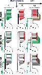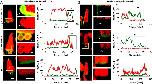 Evagination overgrowths induced by F-actin disruption contain rhodopsin and peripherin/rds. The photoconversion technique allows discrimination of old (red) from newly synthesized (green) proteins. Xenopus rods were imaged after cytochalasin D, latrunculin A, or DMSO control treatment for 24 h. A, In cytochalasin D- and latrunculin A-treated rods, both old (red) and new (green) rhodopsin-Dend2–1D4 are observed in the evagination overgrowths (arrows). In control rods, evagination overgrowths are not observed, and new rhodopsin-Dend2–1D4 (green) is incorporated into new disks. B, In cytochalasin D- and latrunculin A-treated rods, new peripherin/rds-Dend2 (green) is observed in the evagination overgrowths (arrows). Old peripherin/rds-Dend2 (red) is not observed in these structures (arrows). In control rods, evagination overgrowths are not observed, and new peripherin/rds-Dend2 (green) is incorporated into new disks. Intensity profile charts (A, B, right) were drawn for old and newly added proteins along the lines on left images. Rectangles in the charts represent the areas of evagination overgrowths (arrows). Animals were 14 d old at the time of photoconversion. Images are from live and unfixed retinas. Scale bars: 5 μm. A.U., arbitrary units.
