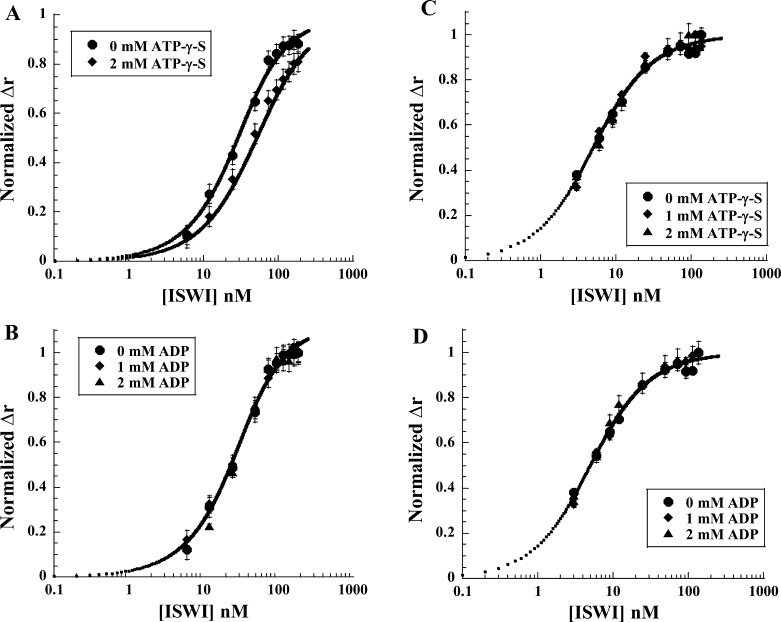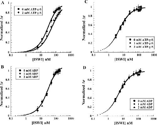 effect of ADP on ISWI binding, two different concentrations [2.5 nM