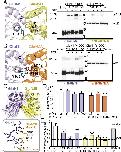 Fig. S7. Engineering a disulfide bond at the GluN1 UL/GluN2 LL NTD dimer interface affects receptor activity. (A) 3D homology model of the GluN1/GluN2A NTD heterodimer based on GluN1/GluN2B NTD crystal structure (pdb code: 3QEL; ref. (11)). The putative interface formed by the GluN1 NTD upper lobe (UL) and the GluN2A NTD lower lobe (LL) is boxed. Inset: sphere representation of the residues mutated into cysteines: GluN1-L320 (purple) and GluN2A-E211 (orange). (B) Sequence alignment in the region around the GluN1 UL/GluN2 LL interface. Residues mutated into cysteines are indicated with asterisks (GluN1-L320 and GluN2A-E211). The residues contributing to the electrostatic interactions are colored in purple for GluN1 (K131, K322 and R323), orange for GluN2A (D207 and E211) and yellow for GluN2B (D206, D210 and D213), respectively. (C) Immunoblots from Xenopus oocytes expressing GluN1/GluN2A receptors incorporating either wild-type (wt) or cysteine mutant subunits. The GluN1 monomer band (M1) is ~110 kDa, while the GluN2A monomer band (M2) is ~180 kDa. The D1/2 arrowheads indicate the GluN1/GluN2A disulfide-linked heterodimer (absent in DTE). (D) Relative MK801 inhibition kinetics of GluN1/GluN2A receptors incorporating wt or cysteine mutant subunits. Inset: Close-up view of the modelled GluN1 UL/GluN2A LL NTD dimer interface. Mean values are, from left to right: 1.00 ± 0.06 (n=9), 0.93 ± 0.09 (n=6), 0.98 ± 0.07 (n=6), and the double-cysteine receptors before, 1.98 ± 0.14 (n=9), and after (black bar), 0.74 ± 0.07 (n=6), DTE treatment. (E) Relative MK801 inhibition kinetics of GluN1/GluN2B receptors incorporating wt or cysteine mutant subunits. GluN1* represents the GluN1-C744AC798A mutant subunit (9, 12). Inset: Close-up view of the GluN1 UL/GluN2B LL NTD dimer interface as seen in the GluN1/GluN2B NTD dimer crystal structure (11). The two introduced cysteines, GluN1-L320C and GluN2BD210C are indicated in sphere. Mean values are, from left to right: 1.00 ± 0.12 (n=9), 0.89 ± 0.11 (n=7), 0.81 ± 0.15 (n=10), and the double cysteine containing receptors before, 3.45 ± 0.50 (n=6), and after (black bar), 0.53 ± 0.06 (n=5), DTE treatment. *P<0.05, ***P<0.001, Student’s t-test. Error bars represent the S.D. |