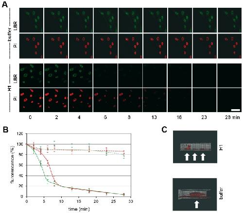 Shimizu, Lamin B phosphorylation by protein kinase calpha and proteolysis during apoptosis in human leukemia HL60 cells. 1998, Pubmed