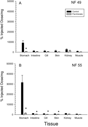 Changes in gastric sodium-iodide symporter (NIS) activity are associated with differences in thyroid gland sensitivity to perchlorate during metamorphosis.