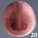 frs3 (fibroblast growth factor receptor substrate 3) gene expression in Xenopus laevis embryo, assayed via in situ hybridization, NF stage 20, anterior view, dorsal up.