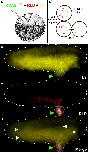 Figure 1. KRASG12D injection results in the formation of induced tumor like structures that are gap junctionally connected to the host. (A) The schematic shows injection of KRASG12D + RLD (Rhodamine-Lysinated Dextran, M. W. 10 kDa) + LY (M.W. 0.522 kDa) into one cell of a 16-cell stage embryos. The RLD labels injected cells (and their descendants), while LY is small enough to traverse gap junctions. (B) At a stage 34 embryo (white dotted outline), LY signal is present not only in tissue derived from the injected cell (tumor; green arrowheads) but also widely throughout the rest of the host. (C) RLD shows cells injected with oncogene, some of which are in the localized tumors and others that have migrated (metastasized) out into the host. (D) Overlay of the two signals reveals areas (white arrowheads) that exhibit LY signal but not RLD signal, which demarcate cells that are in active GJ communication with the injected (tumor) cells (N = 5 of 5). Schematic in panel A (and in subsequent figures) is used with permission from Nieuwkoop and Faber (1967). |