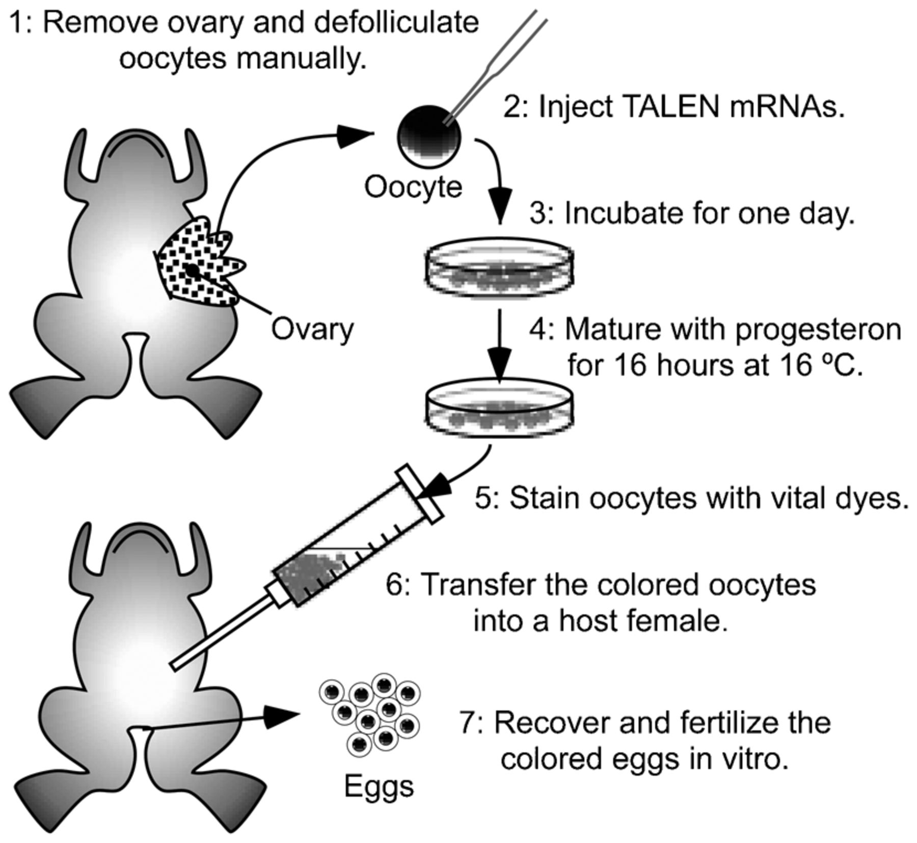 Efficient targeted gene disruption in Xenopus embryos using engineered transcription activator-like effector nucleases (TALENs).