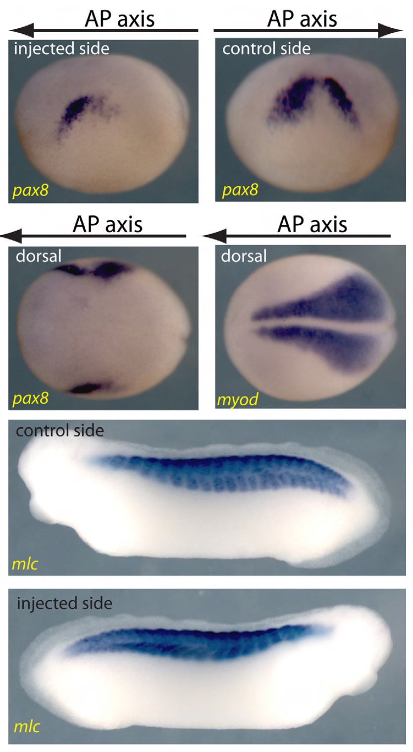 mlc expression at tailbud stage are affected. Arrows indicate orientation of AP axis.