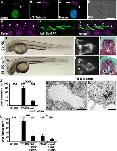 hpf Tg(actb2:Mmu.Arl13b-GFP) zebrafish embryos. (H-Iâ²) Expression silencing of ezrin (I-Iâ²) using TB-MO ezrin (2â