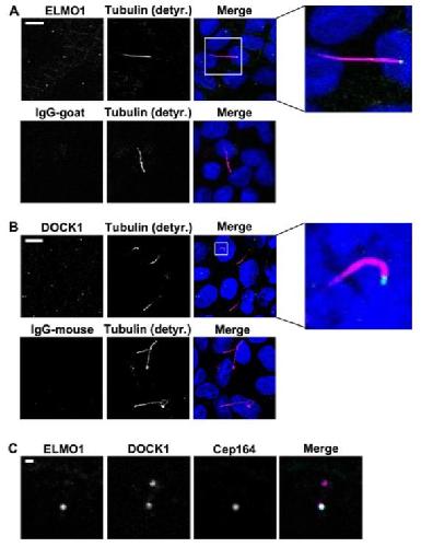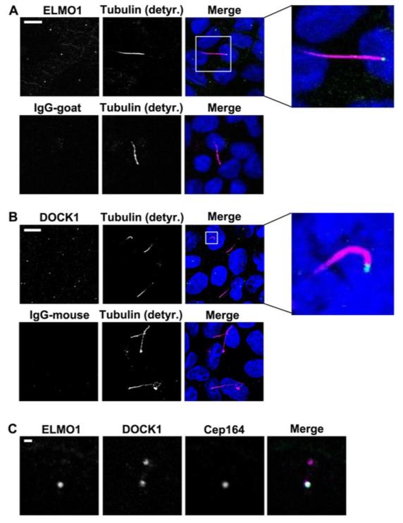 Supplemental Fig. S2. ELMO1 and DOCK1 localize to the basal body of primary cilia