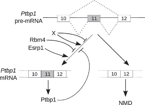 Wollerton, Autoregulation of polypyrimidine tract binding protein by alternative splicing leading to nonsense-mediated decay. 2004, Pubmed