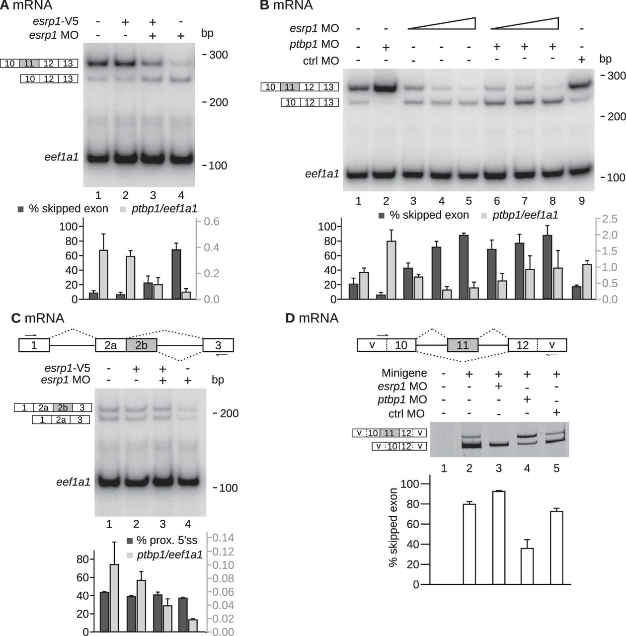 Genes referenced: eef1a1 esrp1 pcna ptbp1 ptbp2 rbm4 tpm1