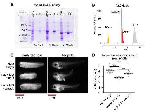 N-terminally truncated, purified recombinant XtδNADK. (C) Bright-field images of embryos injected with control morpholino + eyfp mRNA, nadk morpholino +