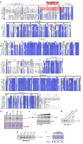 conservation between the species. (B) Identification of the CaM-dependent phosphorylation site in SpNADK-1. Autoradiograph and Coomassie-stained SDS/