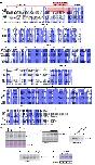 binding sites are boxed in red. Amino acid conservation is represented by different shades of blue, where the darker the shade, the higher the level of